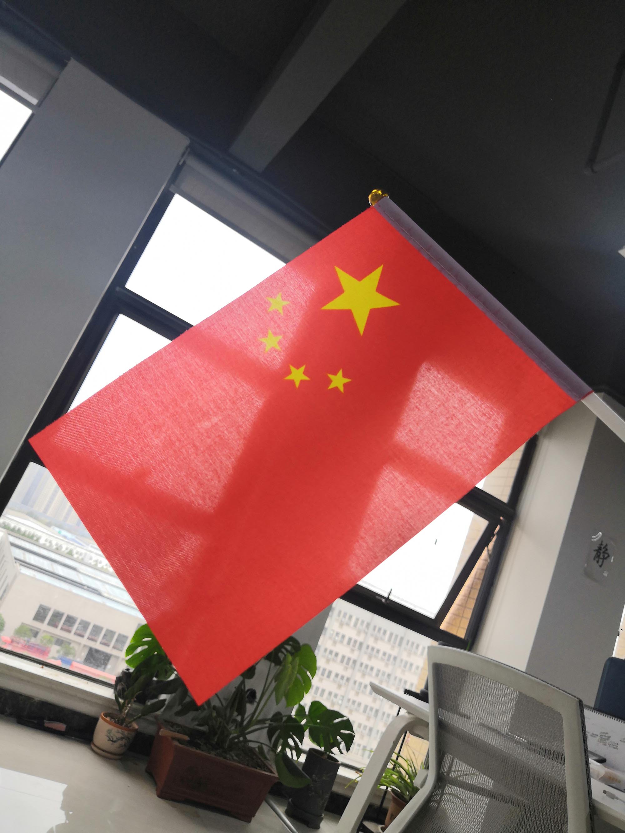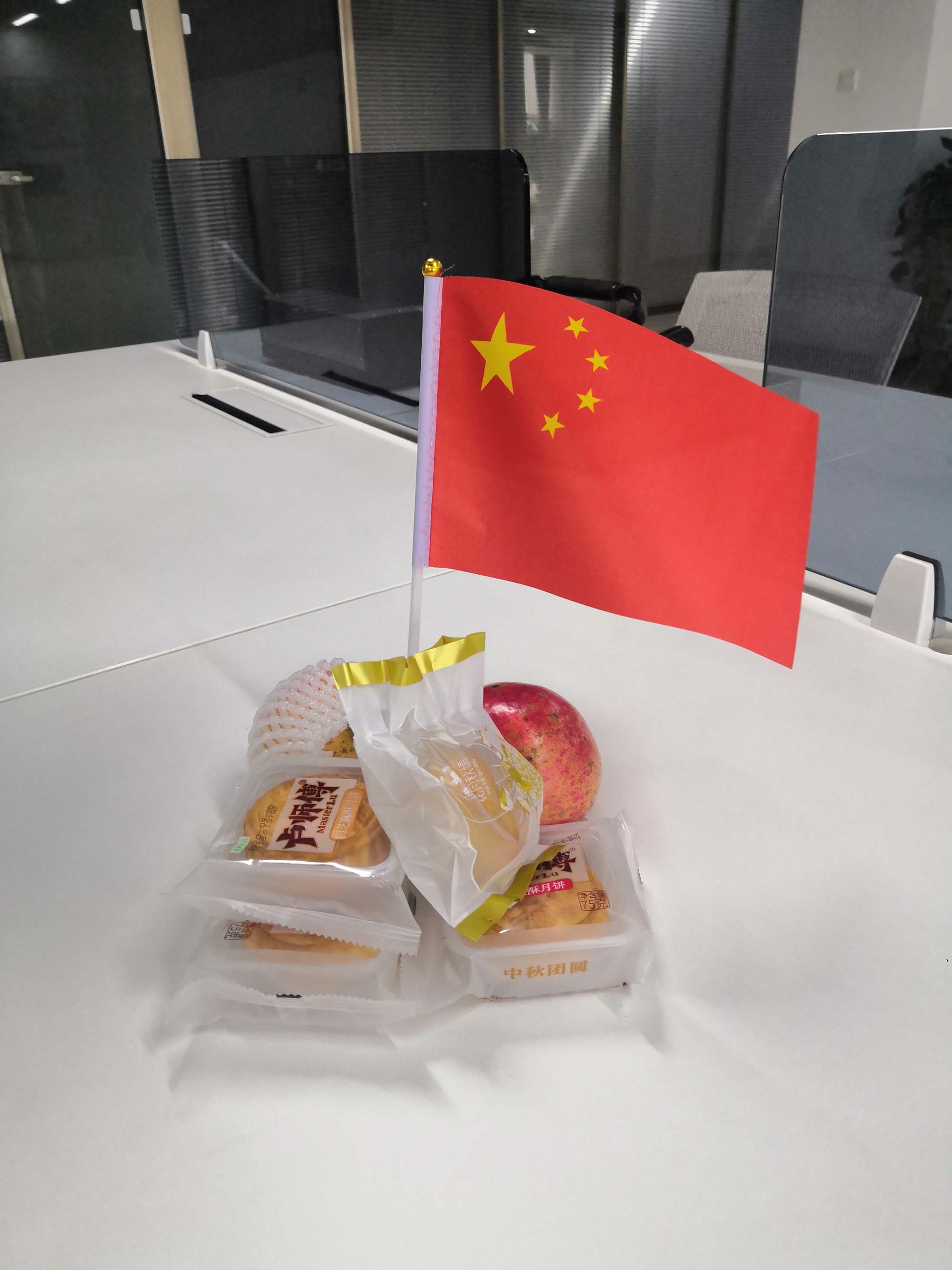 不僅準備了大大的紅旗,還有小小的紅旗。員工人手一份,保證滿足全體員工的愛國心。